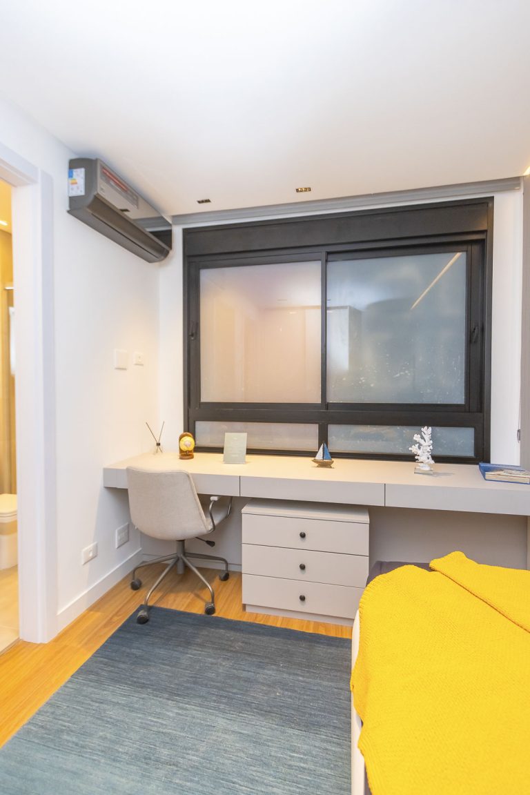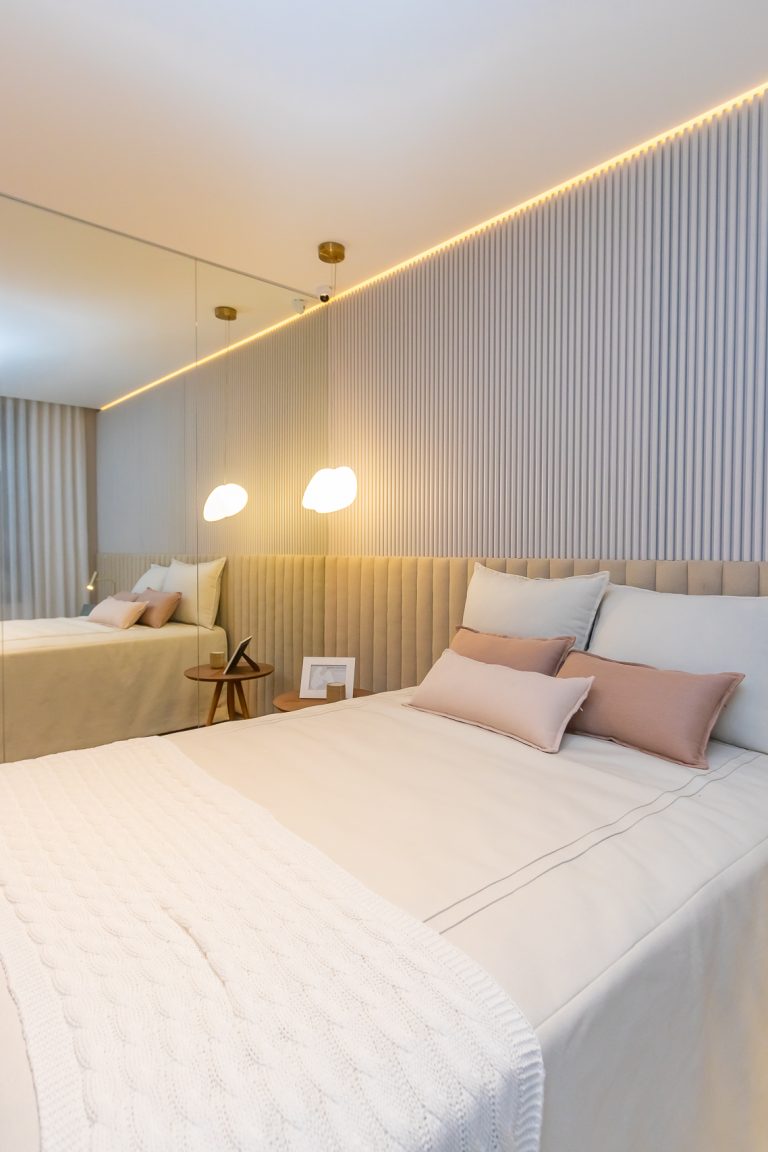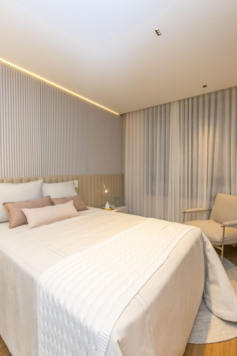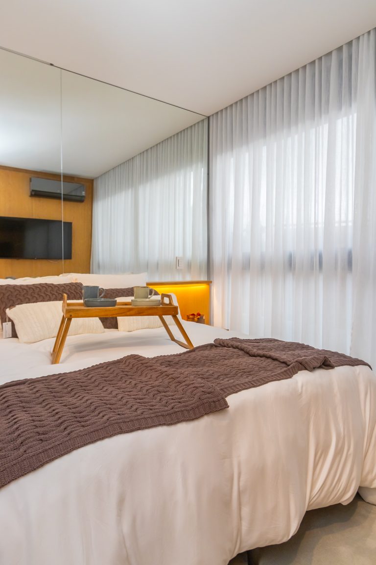 Persianas tipo rolô blackout, automatizadas nas suítes
