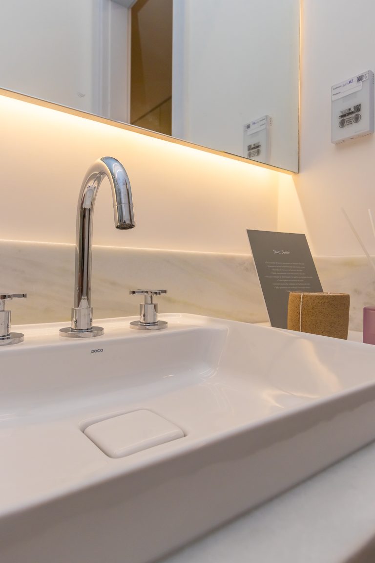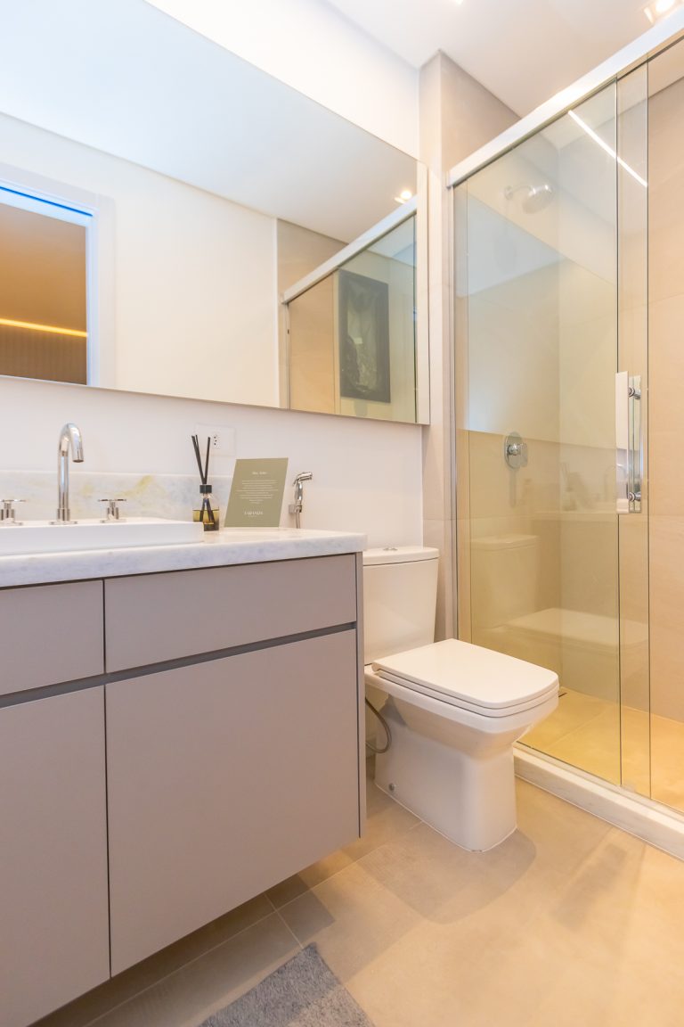 Metais monocomando no box dos banheiros das suítes