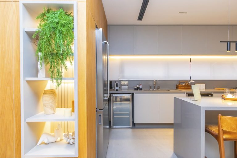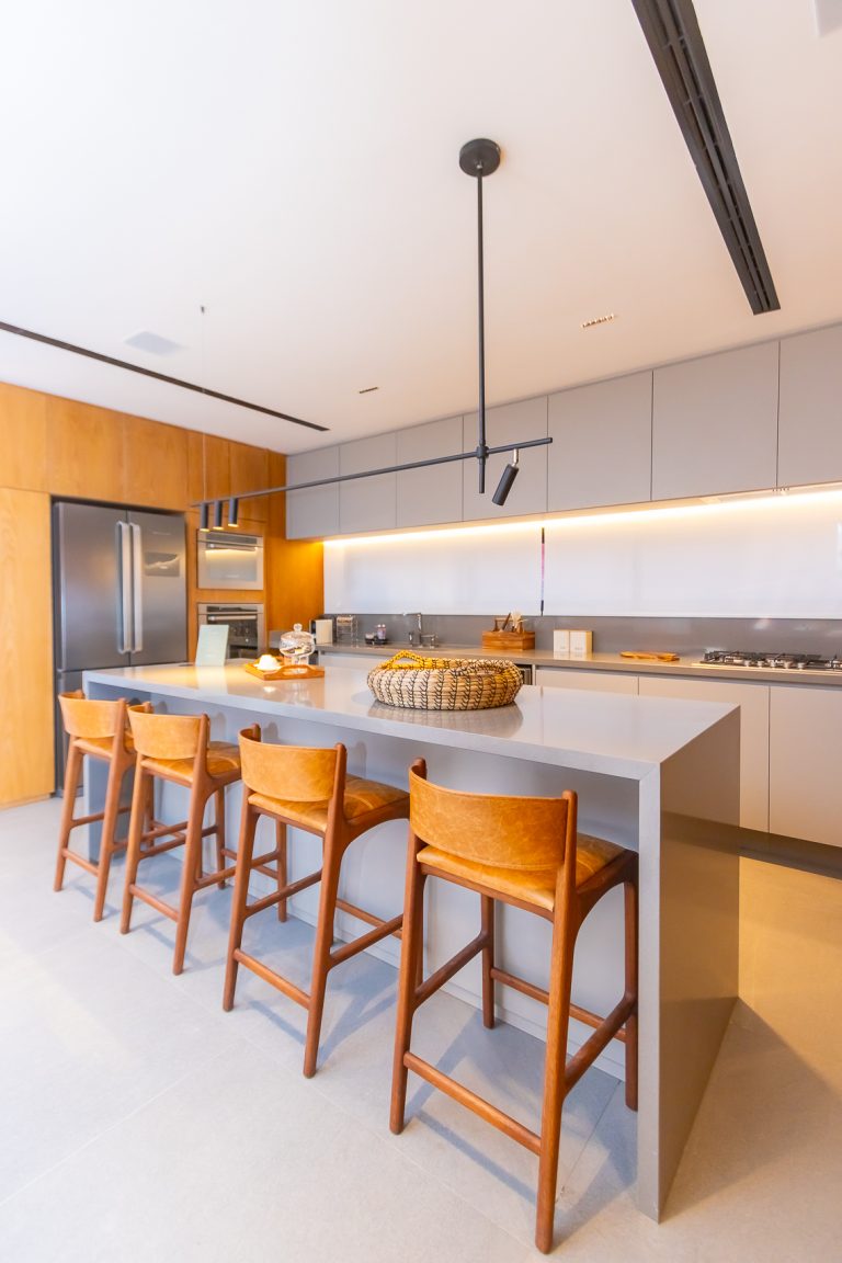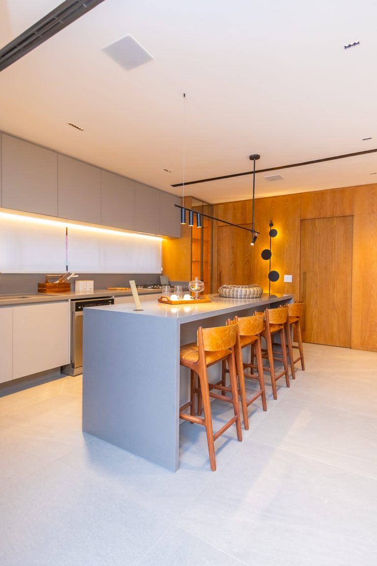 Cozinha com ilha central e Infra para instalação de coifa e triturador