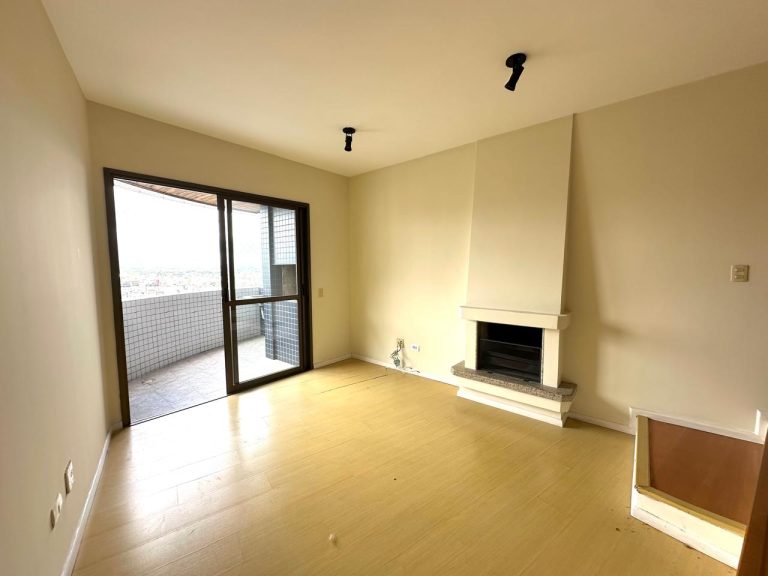 A sala é ampla, com ventilação cruzada e lareira, perfeita para receber amigos ou relaxar nos dias mais frios. A sacada com churrasqueira a carvão é ideal para momentos de lazer em família.