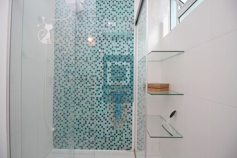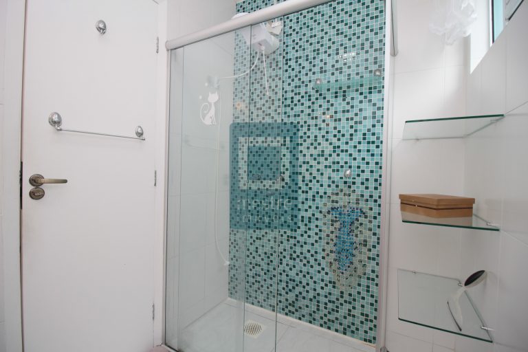 4. Banheiro Confortável: com box de vidro e armários, para um banho relaxante.