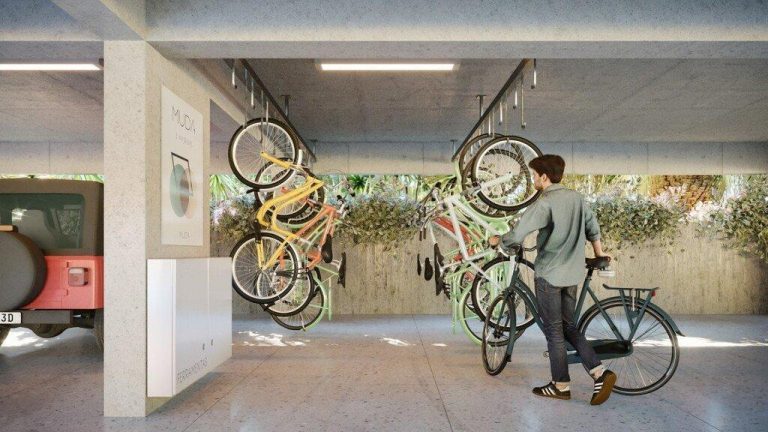 ÁREAS COMUNS: Bicicletário Muda WF – Weefor – O MUDA é um empreendimento que integra o viver, o conviver, o trabalhar e o relaxar, baseado em um amplo conceito de comunidade. Localizado no coração do Água Verde, próximo a bares, restaurantes e cafés, e se você andar mais algumas quadras, ainda se depara com muitas opções de serviços, museus, teatros e shoppings. As ruas bem arborizadas são um belo convite para uma caminhada pelo bairro, repleto de boas opções, seja qual for seu estilo de vida. Todos os apartamentos possuem sacada com churrasqueira à carvão e horta autônoma, infraestrutura para ar condicionado e 1 vaga de garagem. O empreendimento possui espaço de coworking com entrada individual no piso térreo e garagens no subsolo com ventilação natural.