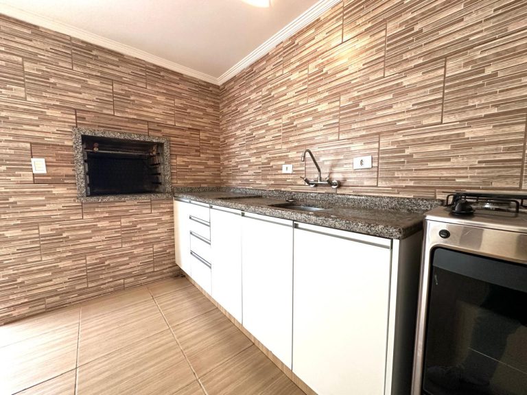 Nos fundos, a casa oferece um espaço gourmet completo, com: